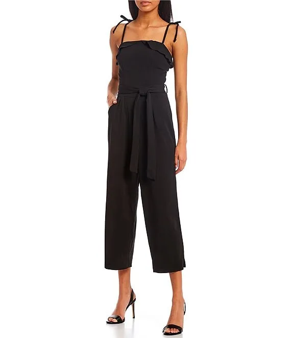 - square neckline with ruffle popover detail