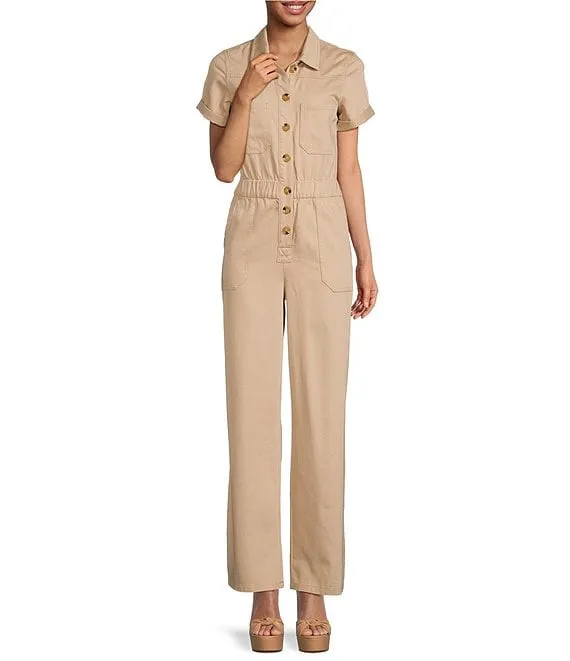 Tori Denim Short Sleeve Collared Flightsuit