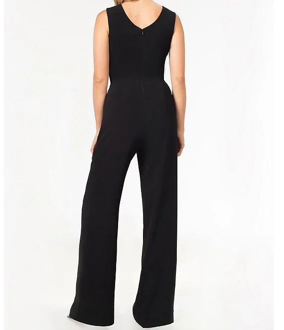 Sleeveless V-Neck Scuba Crepe Jumpsuit