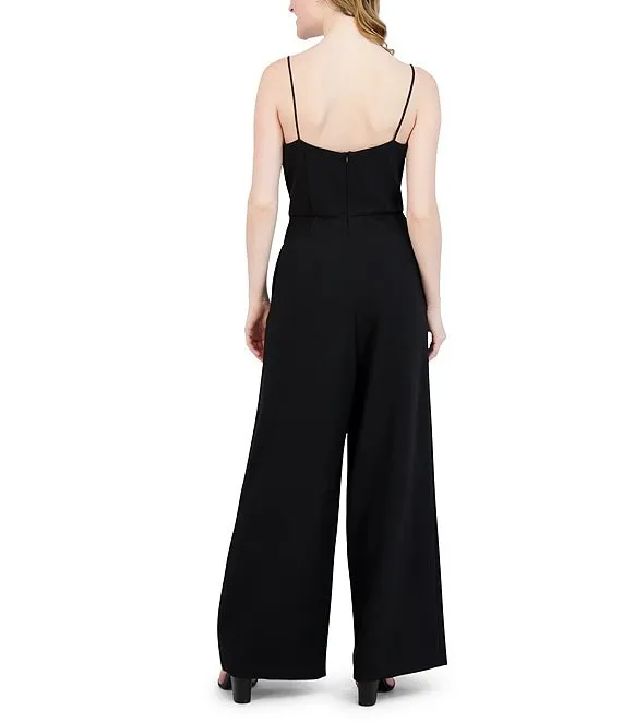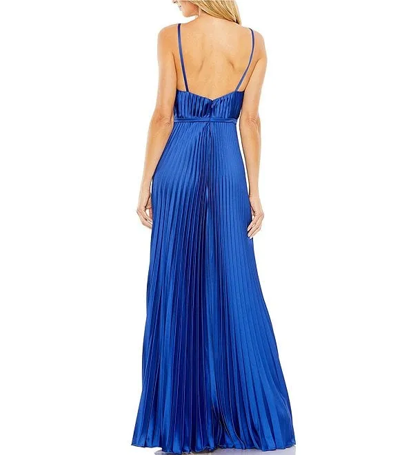 Mac Duggal Pleated Deep V-Neck Spaghetti Strap Sleeveless Wide Leg Jumpsuit