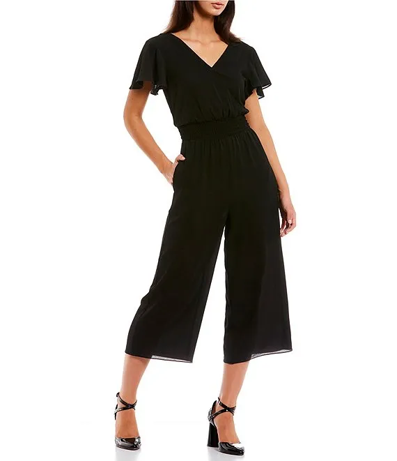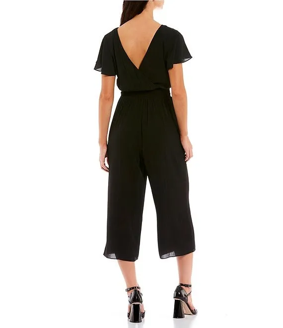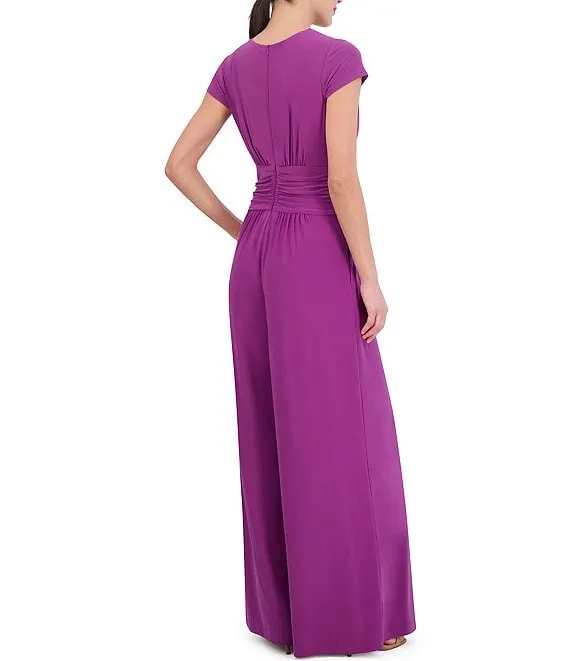 V-Neck Short Sleeve Twist Front Jumpsuit