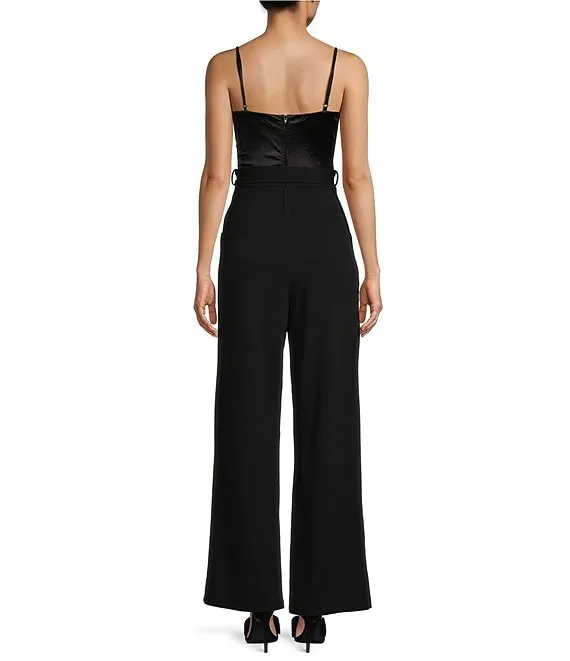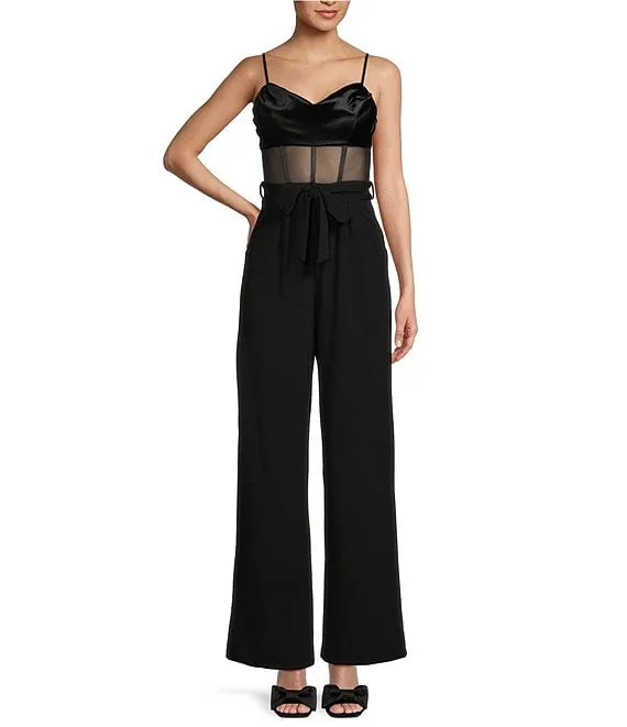 Sweetheart Neck Illusion Waist Wide Leg Jumpsuit