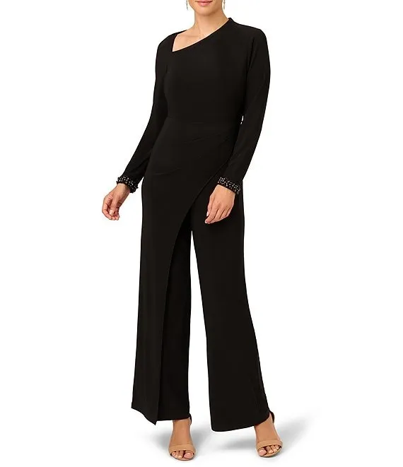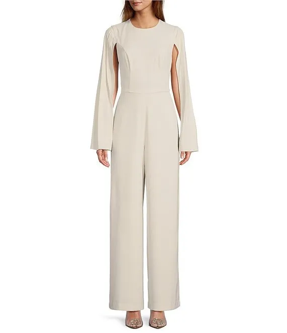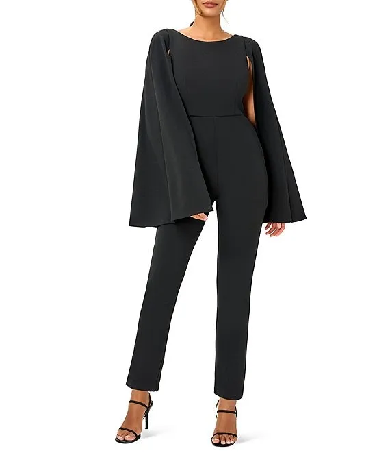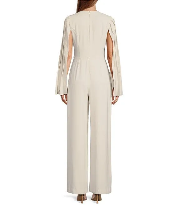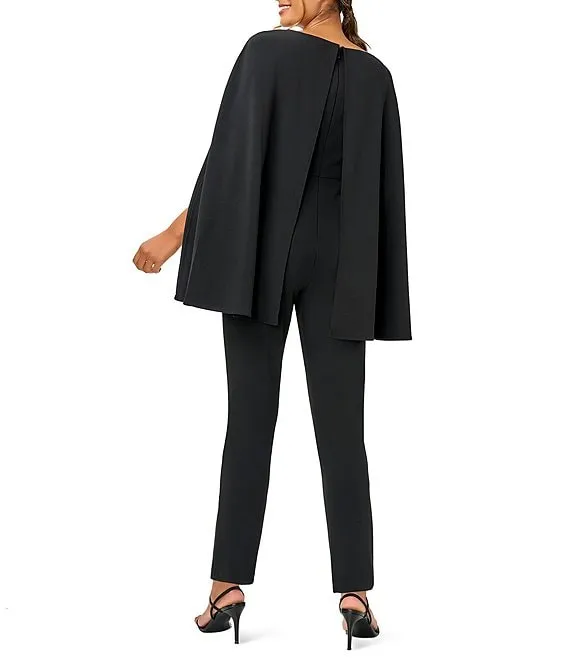 Adrianna Papell Stretch Crepe Boat Neck Cape Back Slim Leg Jumpsuit