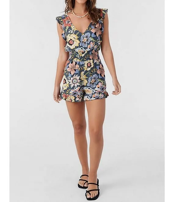 Katy Floral Print Flutter Sleeve Ruffle Hem Romper
