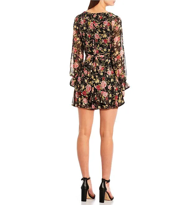 Floral Print Long Sleeve Asymmetrical Hem Romper