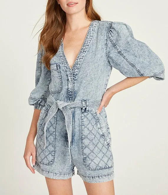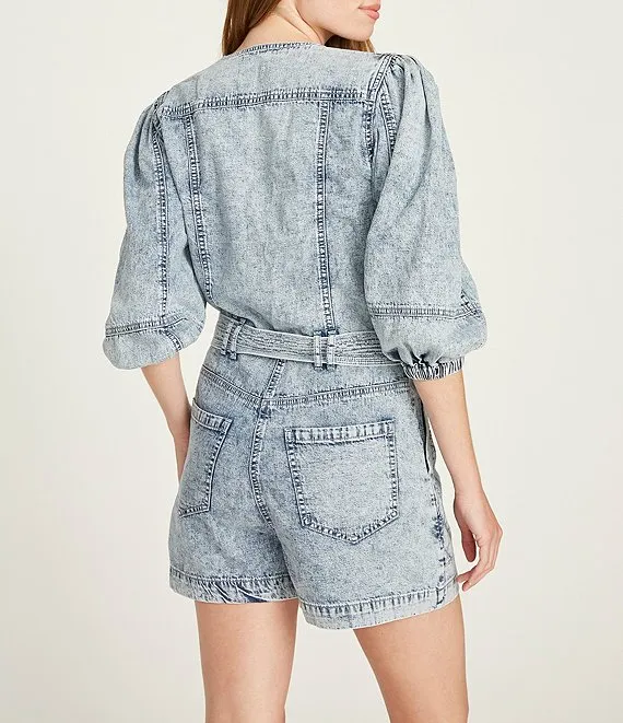 Puff Off-The-Shoulder Sleeve Tie Back Romper