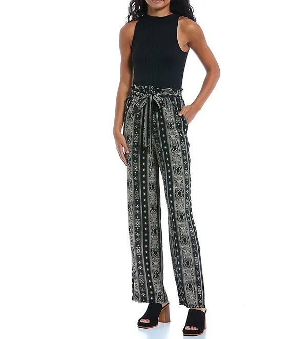 Halter Ribbed Top Printed Wide Leg Jumpsuit