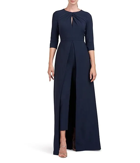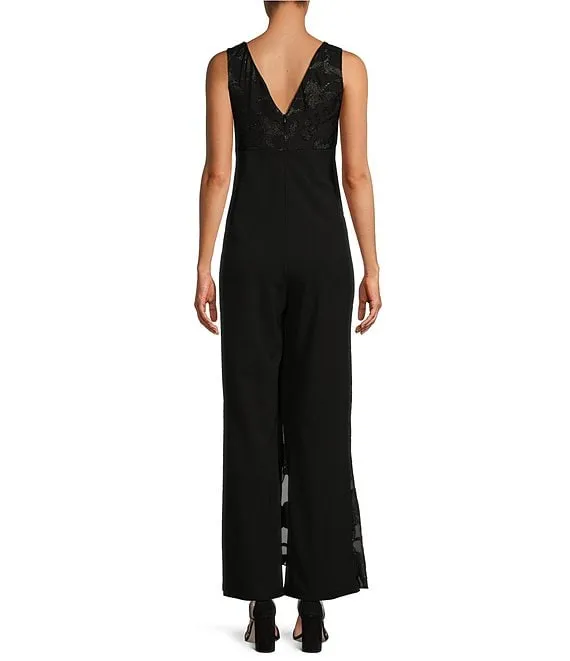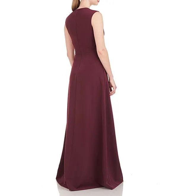 Stretch Crepe Jewel Neckline Sleeveless Walk Through Jumpsuit
