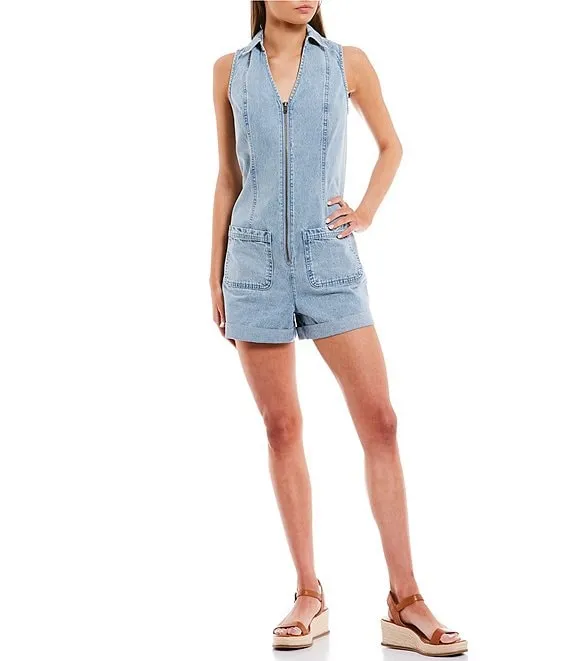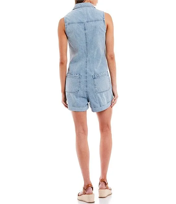Sleeveless Rolled Hem Denim Romper