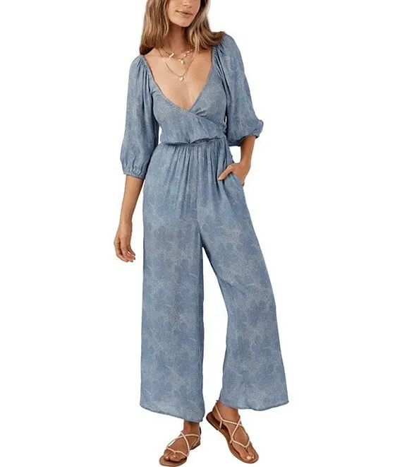 Satin Printed Wide Leg Jumpsuit