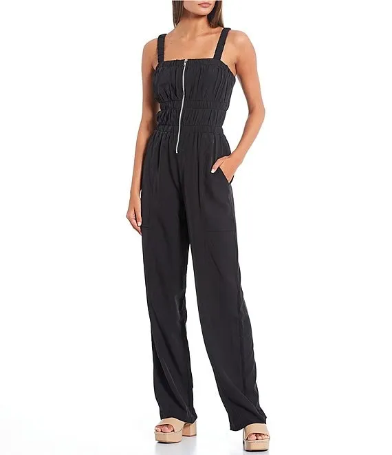 Utility Zip Front Elastic Waist Wide Leg Jumpsuit