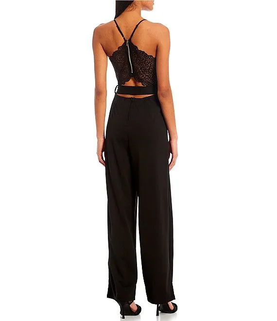 Tilly Lace Illusion Waist Wide Leg Jumpsuit