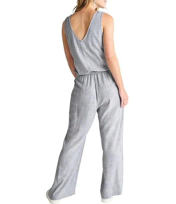 Kali Striped V- Neck Sleeveless Drawstring Waist Jumpsuit
