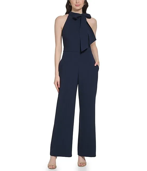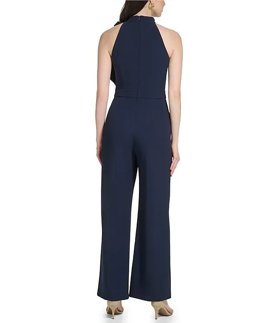 Sleeveless Bow Tie Mock Neck Jumpsuit