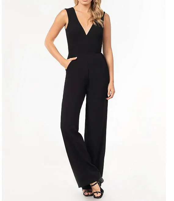 Sandra Stretch Crepe Plunging V-Neck Wide Leg Jumpsuit