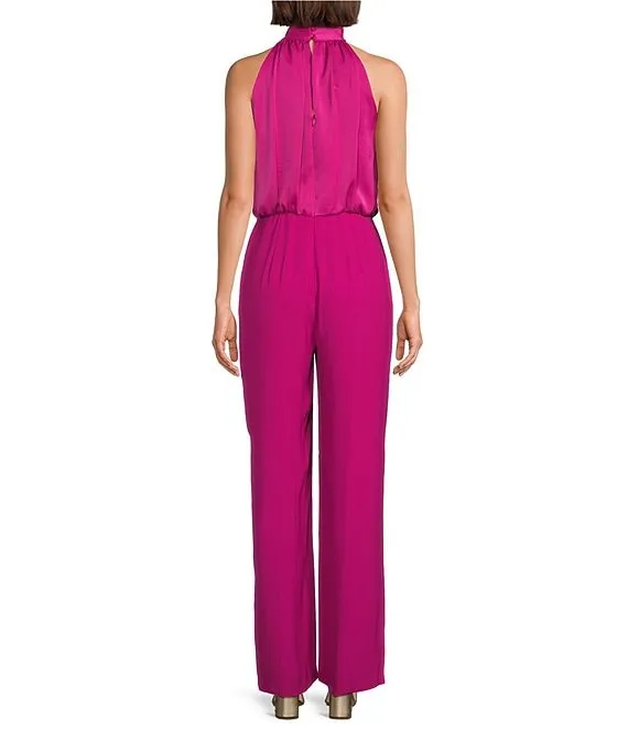 Adelyn Rae One Piece V Halter Neckline Sleeveless Jumpsuit