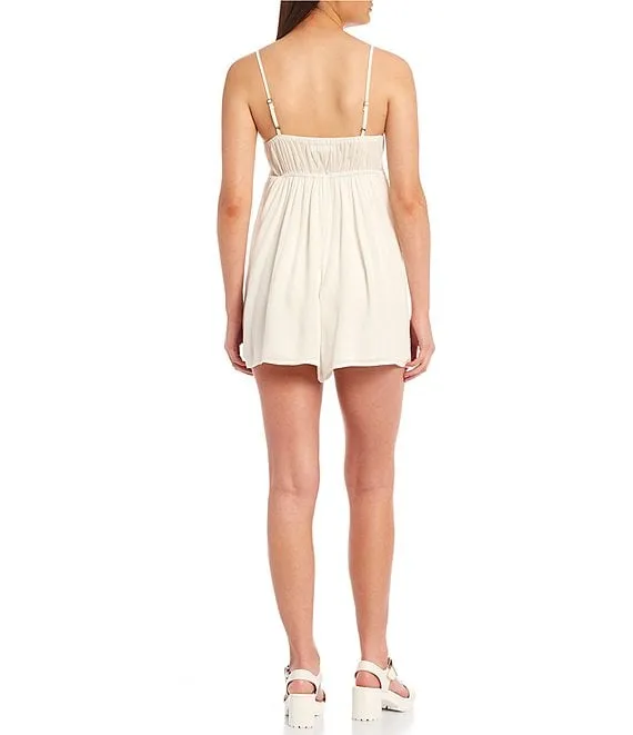 Long Sleeve V-Neck Godet Romper