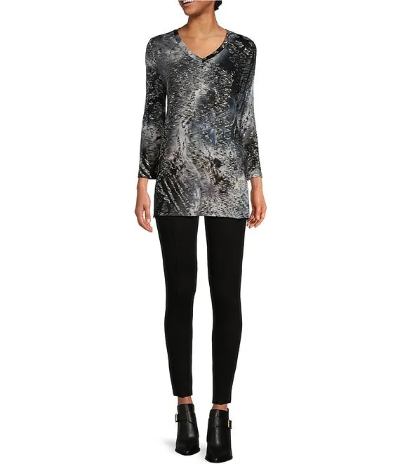 Deluxe Front Seam High Waisted Knit Denim Pull-On Leggings