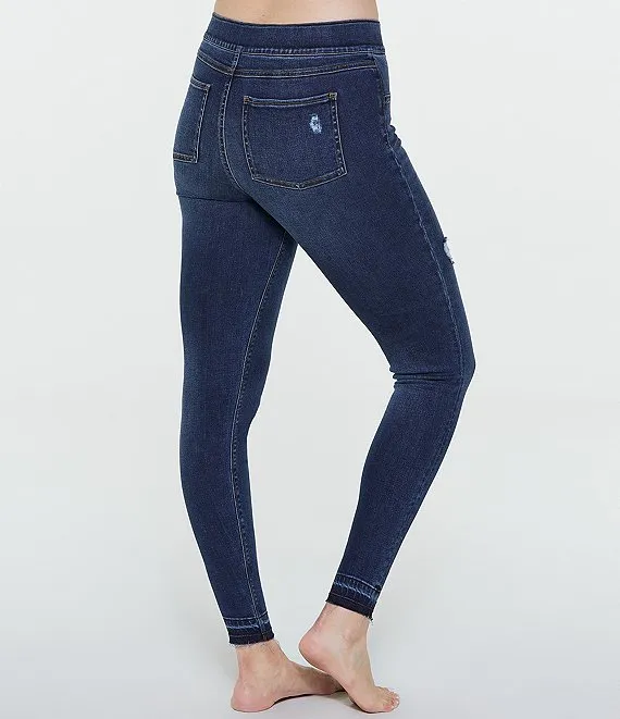 Distressed Denim High Rise Elastic Waist Jeggings