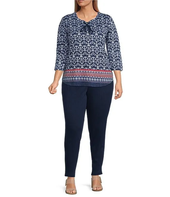Plus Size Elastic Waist Pull-On Denim Knit Leggings