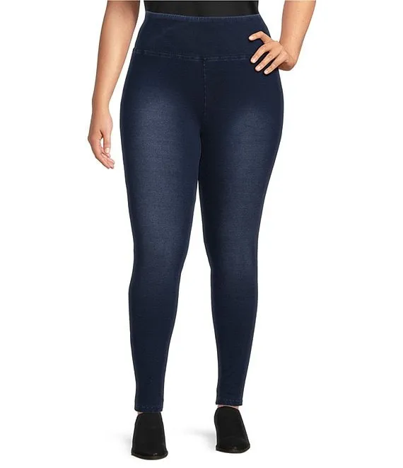 Plus Size Elastic Waist Pull-On Denim Knit Leggings