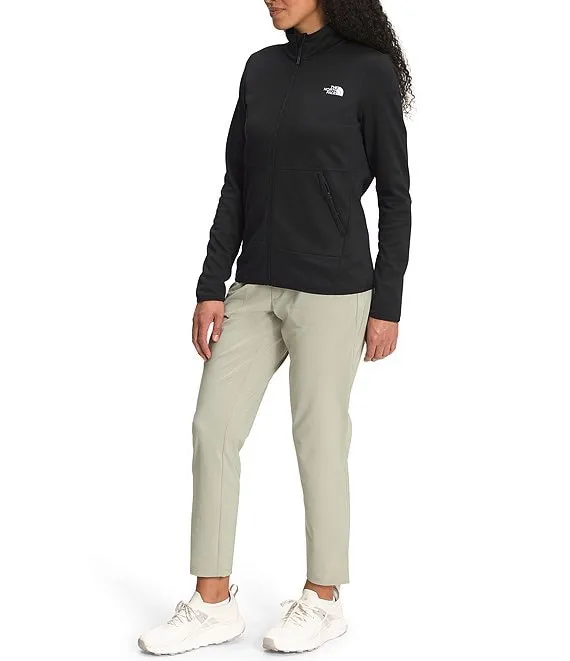 - 200-weight, stretch smooth-face fleece fabrication with a brushed back for comfort