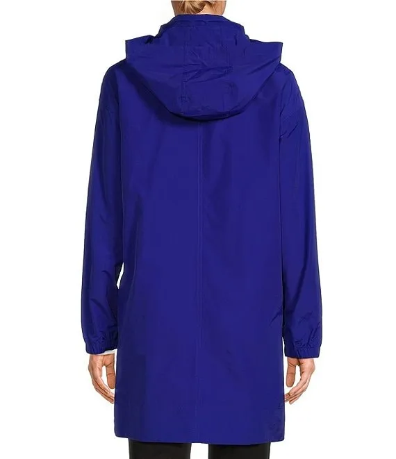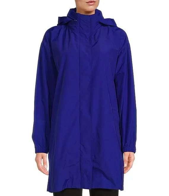 Light Cotton Stand Collar Hidden Hooded Long Sleeve Pocketed Boxy Long Coat