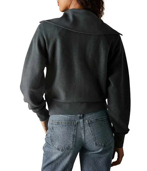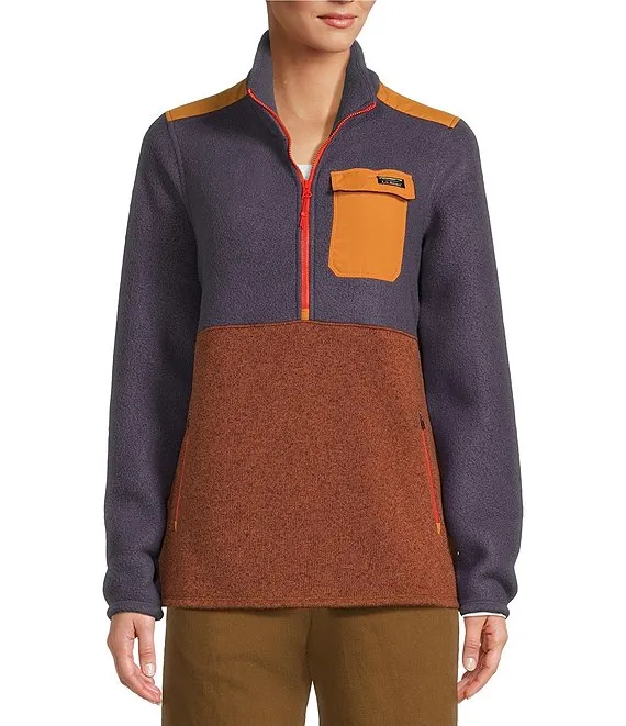 L.L.Bean® Hybrid Sweater Fleece Sherpa Knit Stand Collar Long Sleeve Pullover Jacket