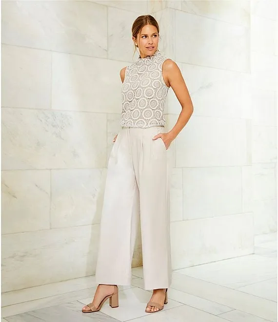 Arlene Twill Full Length Pleated Wide Leg Pant