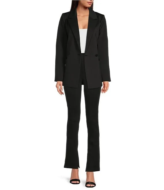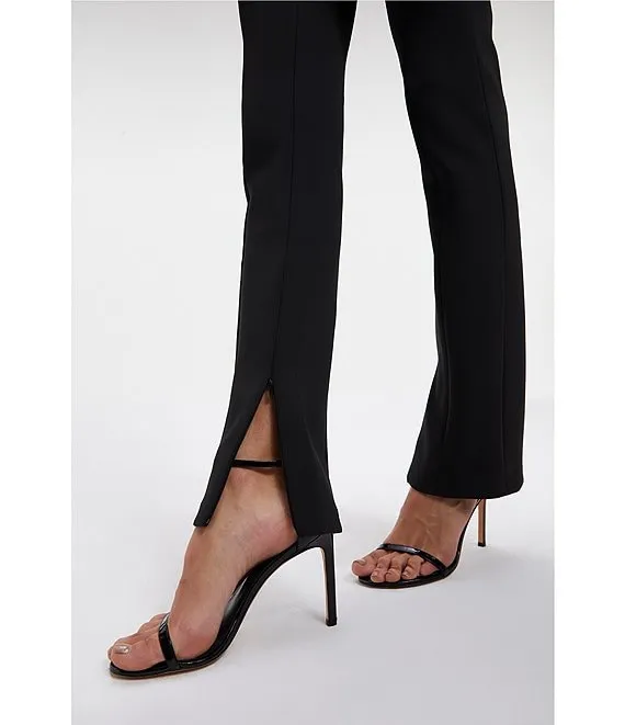 Double Scuba High Rise Flat Front Slim Fit Flare Leg Stretch Knit Pants