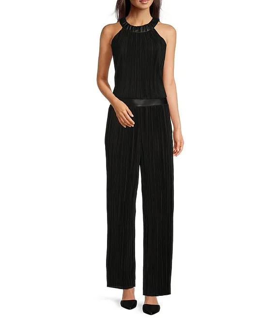 Flat Front Wide Leg Allover Pleated Pull-On Coordinating Pants