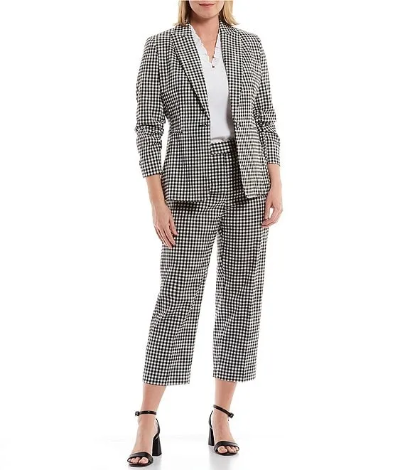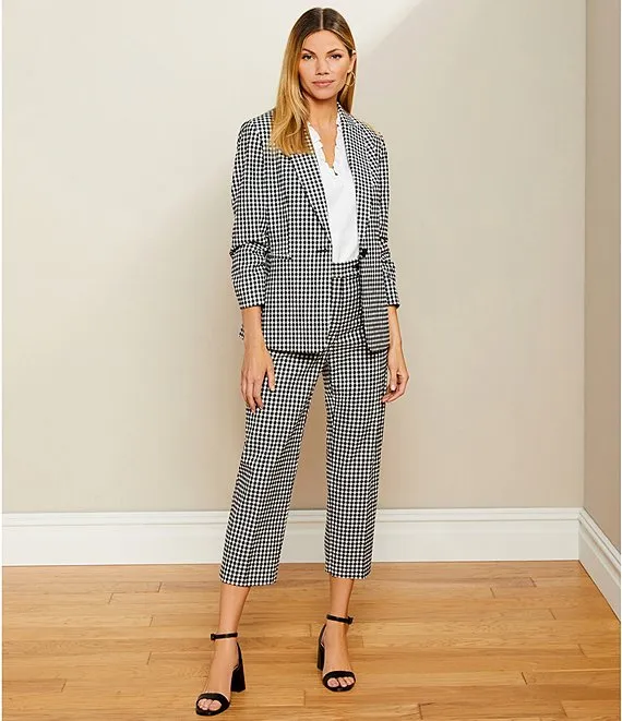 Helena Check Print Flat Front Straight Leg Cropped Pants