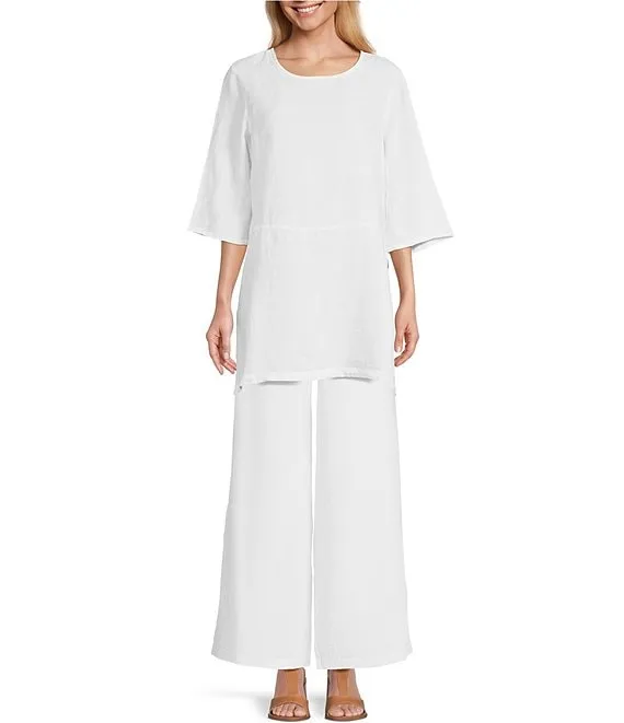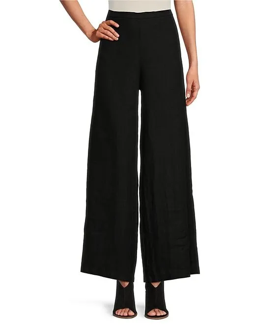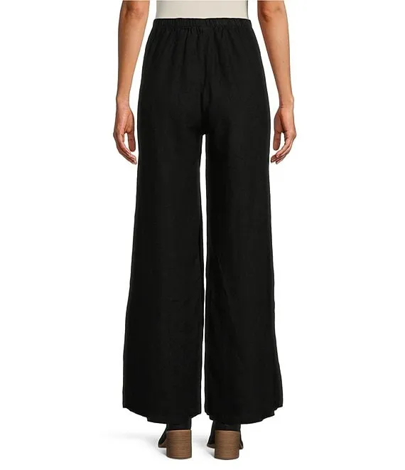 Light Linen Wide-Leg Pull-On Long Full Length Pants