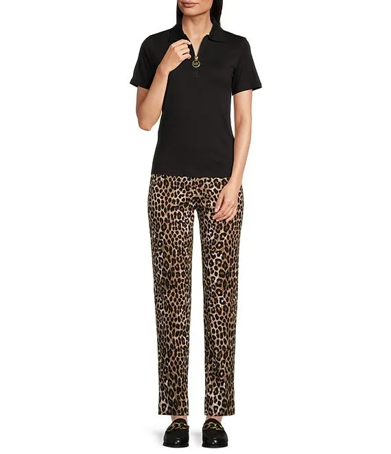 MICHAEL Michael Kors Mega Cheetah Print Classic Stretch Twill Slit Hem Slim Leg Flat Front Pants