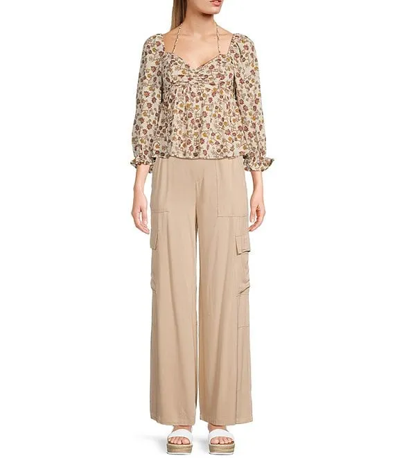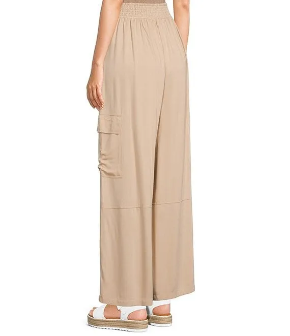 Mid Rise Wide Leg Raw Edge Detail Cargo Pants
