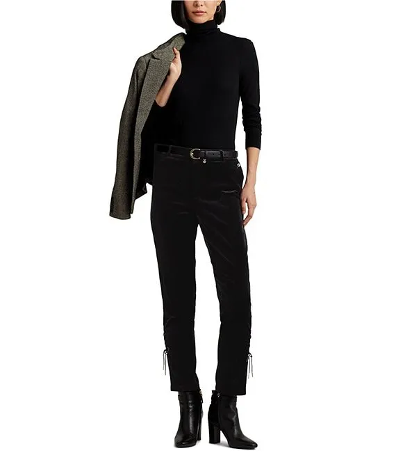 - buttoned placket and a lace-up accent at the bottom of each leg