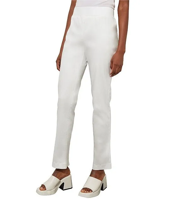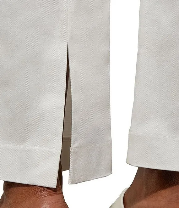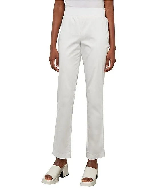 Woven No-Roll Waist Back Slits Hem Pull-On Ankle Pants