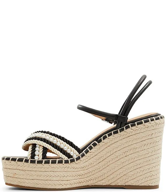 Amalia Pearl Embellished Espadrille Platform Wedge Sandals