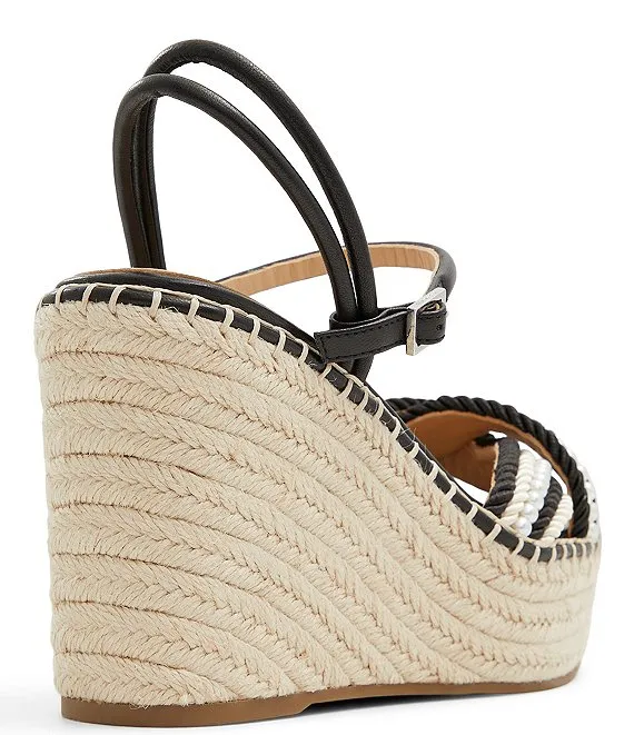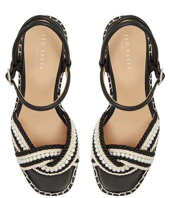 From Ted Baker London, the Amalia Pearl Embellished Espadrille Platform Wedge Sandals feature: