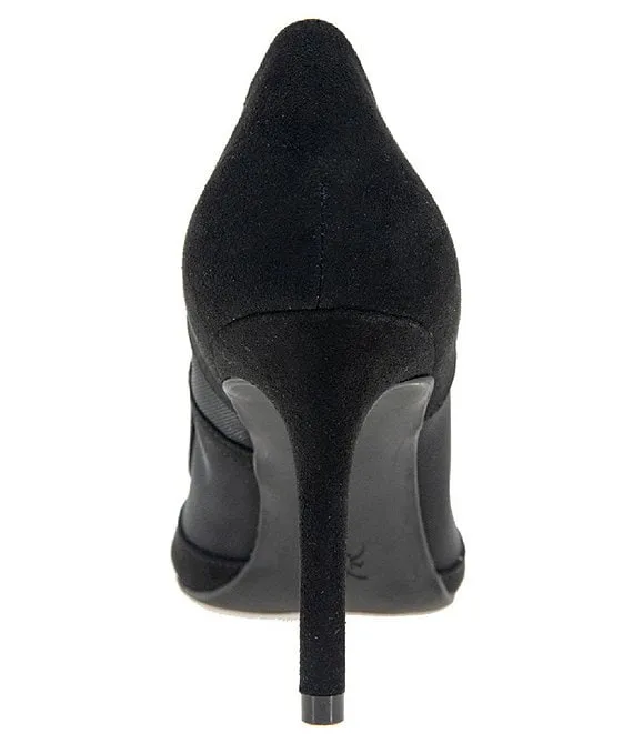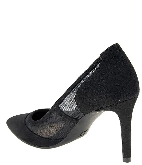 From BCBGeneration, the Asher Microsuede Mesh Dress Pumps feature: