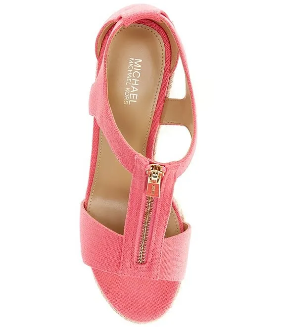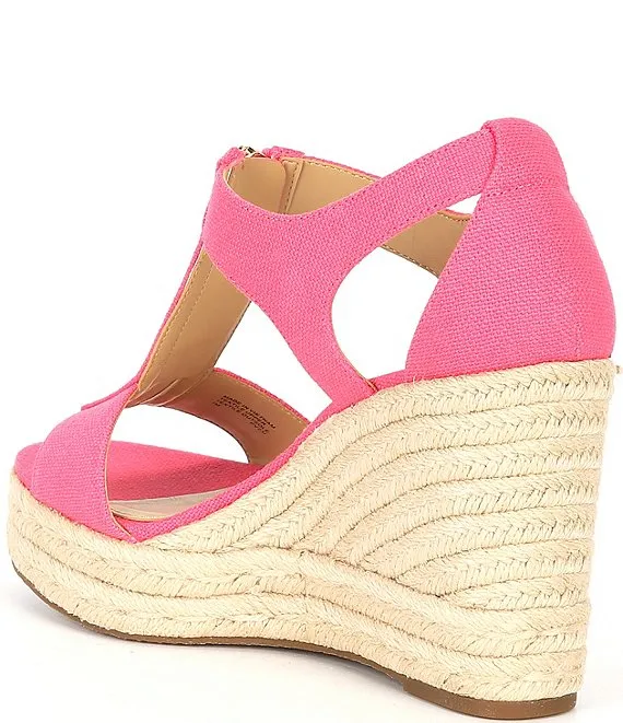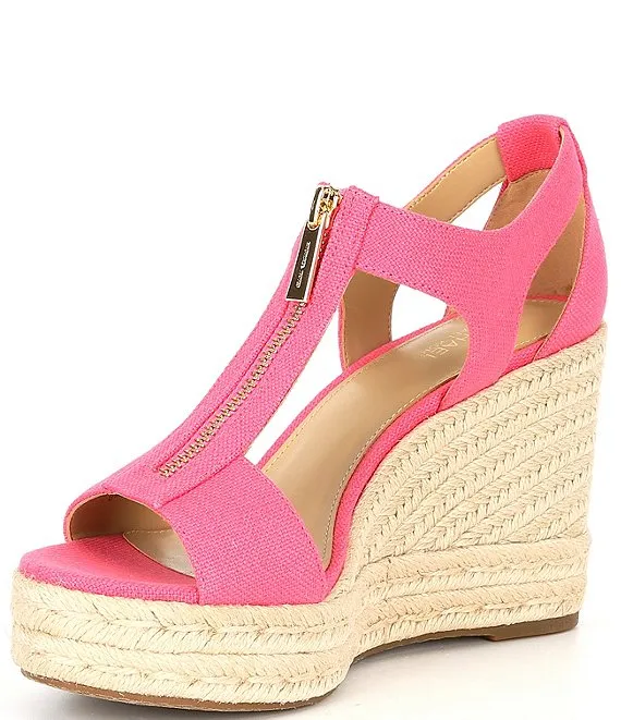 From Michael Kors, the Berkley Canvas Espadrille Wedge Sandals feature: