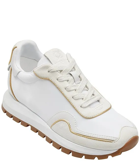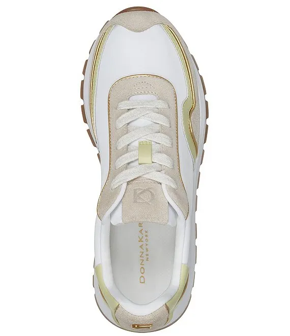 From Donna Karan, the Binx Leather and Suede Lace-Up Sneakers feature: