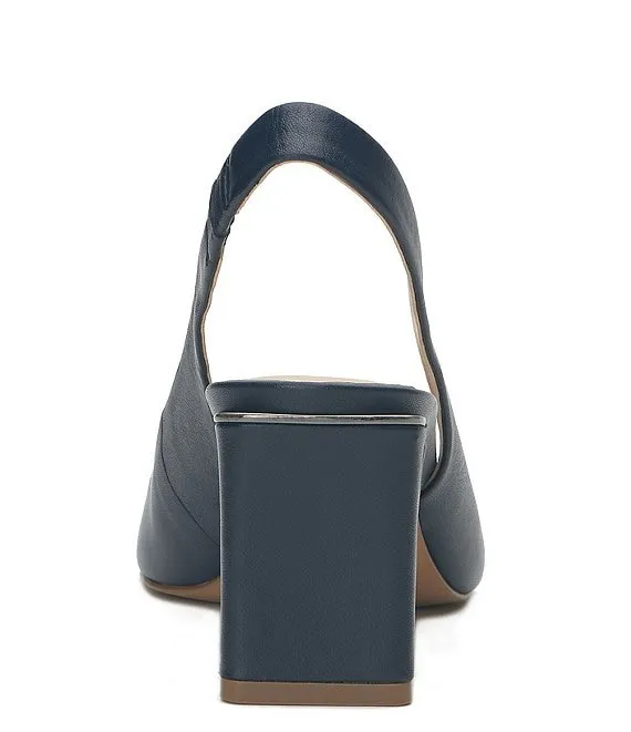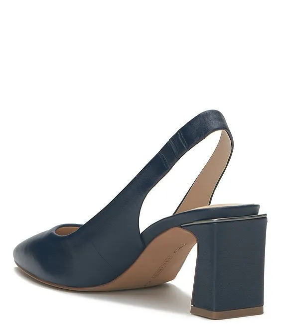 From Vince Camuto, the Hamden Leather Slingback Pumps feature: