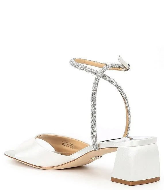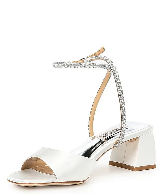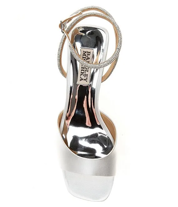 From Badgley Mischka, the Infinity Satin Rhinestone Embellished Dress Sandals feature: