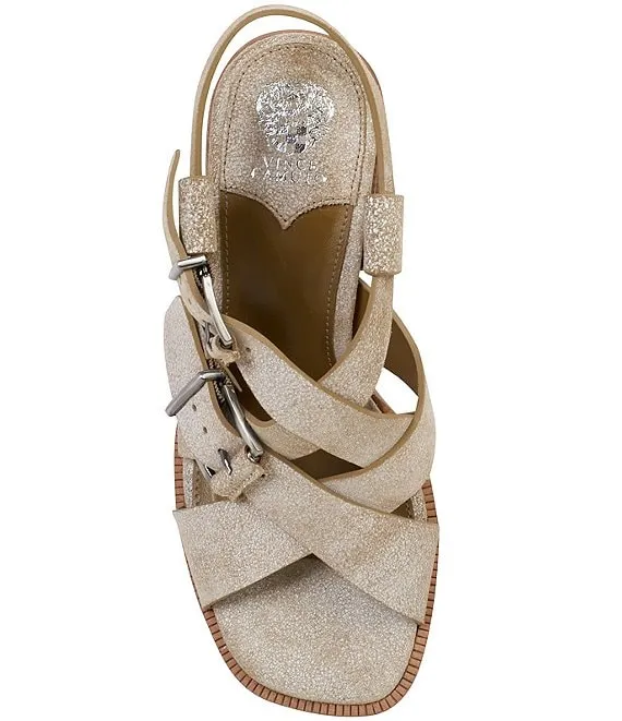 From Vince Camuto, the Penina Suede Buckle Sandals feature: