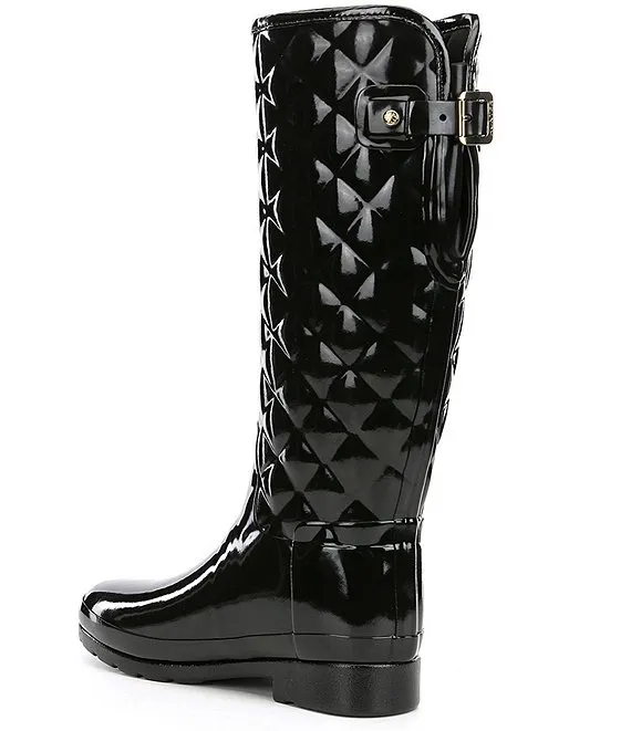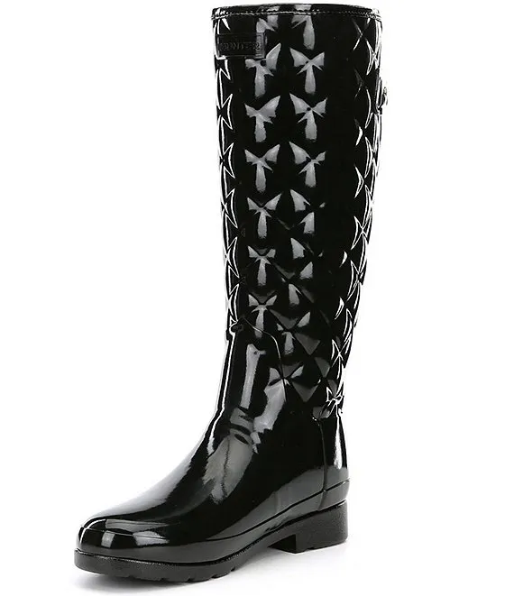 From Hunter, the Tall Refined Narrow Calf Quilted Gloss Rain Boots feature: