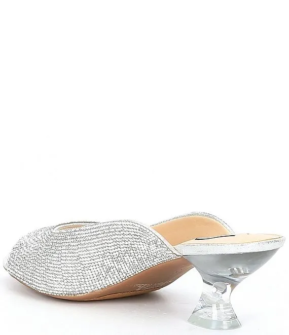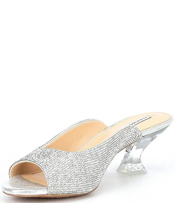From Alex Marie, the Tynslee Rhinestone Lucite Heel Dress Sandals feature: