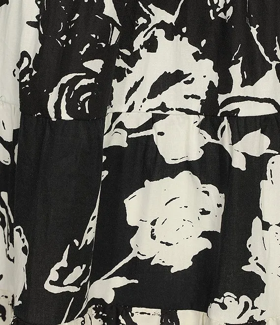 Abstract Floral Mix Print Tiered A-Line Midi Skirt