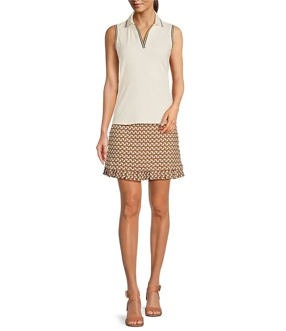 Agnes Geometric Print Catalina Cloth Knit A-Line Pleated Hem Pull-On Skort