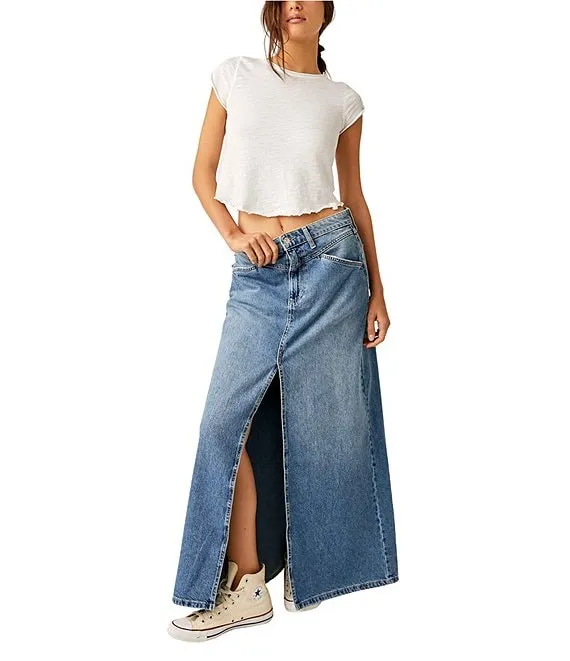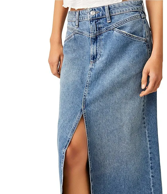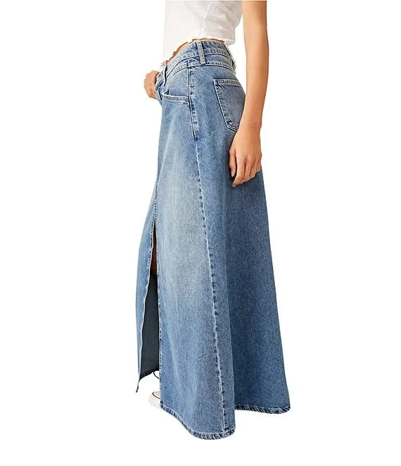 Come As You Are Denim Mid Rise Maxi Skirt